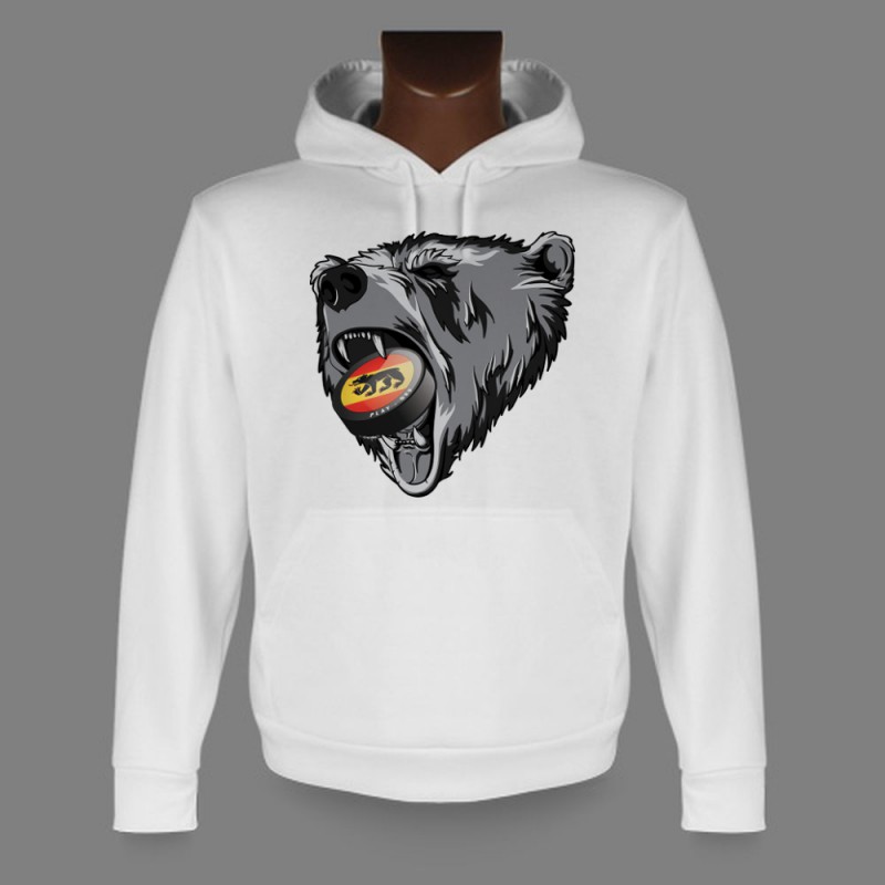 Sweatshirt blanc à capuche, pour femme ou homme, illustré d'un ours tenant un puck bernois