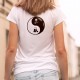 T-shirt à la coupe très féminine illustré d'un ☯ panda géant ☯ mangeant des feuilles de bambou à l'intérieur du Yin et du Yang