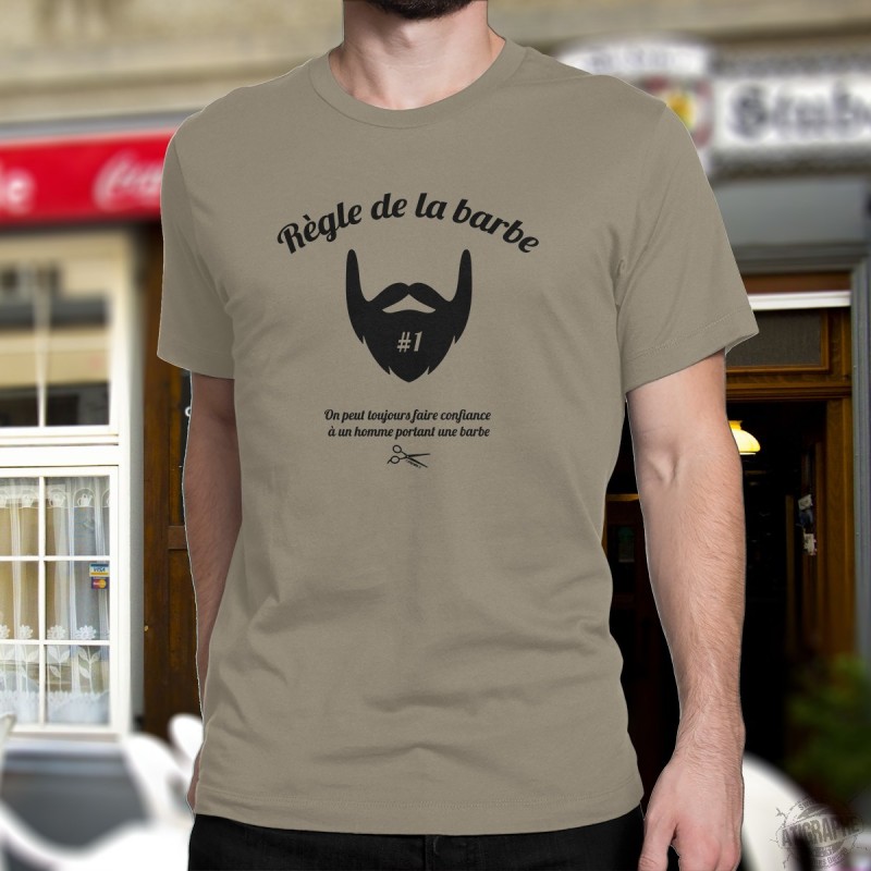 T-shirt humoristique illustré de la Règle de la barbe N°1 "On peut toujours faire confiance à un homme portant une barbe"