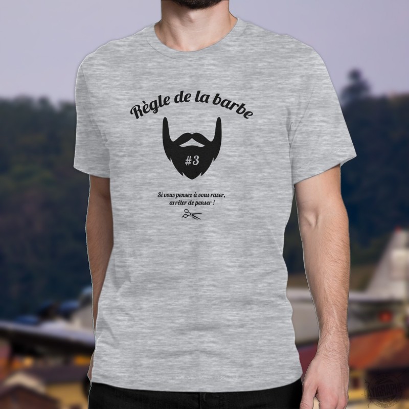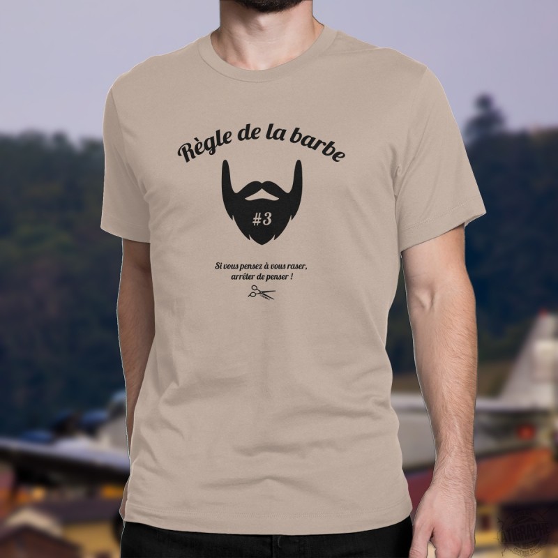 T-shirt humoristique pour homme illustré de la Règle de la barbe N°3 ★ Si vous pensez à vous raser, arrêtez de penser ! ★ la troisième règle du hipster contemporain.