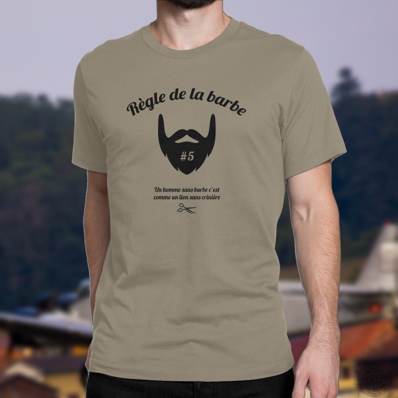 T-shirt humoristique illustré de la Règle de la barbe N°5 "Un homme sans barbe c'est comme un lion sans crinière"