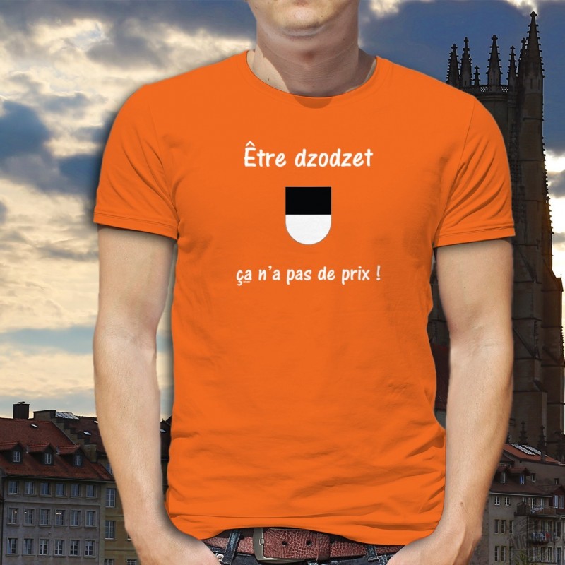 T-shirt coton illustré du texte ★ Être dzodzet ★ ça n'a pas de prix ! ★ inspiré d'une pub bien connue pour Mastercard et de l'écusson du canton de Fribourg