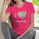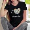 T-shirt coton pour dame avec la citation ❤ J'aime l'Australie ❤ créé spécialement suite au désastre des incendies.