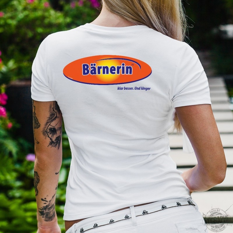 T-shirt mode à la coupe très féminine, illustré de la citation "Bärnerin, klar besser. Und Länger"