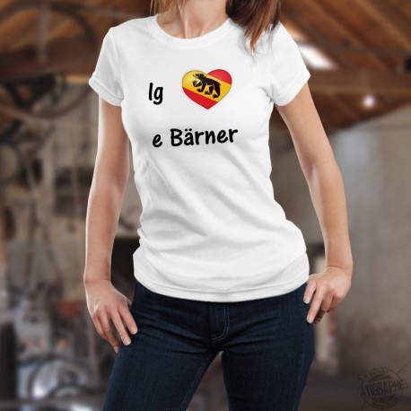 T-shirt à la coupe très féminine, illustré de la citation "ig liebe e bärner" en dialecte bernois