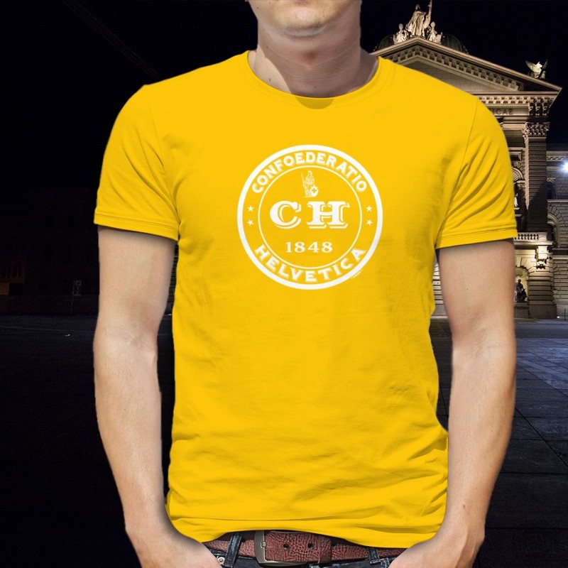 T-shirt en coton pour homme illustré d'un emblème contenant la mention ✚ CH Confoederatio Helvetica 1848 ✚ et d'une représentation de ★ Dame Helvetia ★