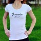 T-shirt mode à la coupe très féminine, illustré de la citation "Genevoise, What else ?", une digression du slogan de George Clooney