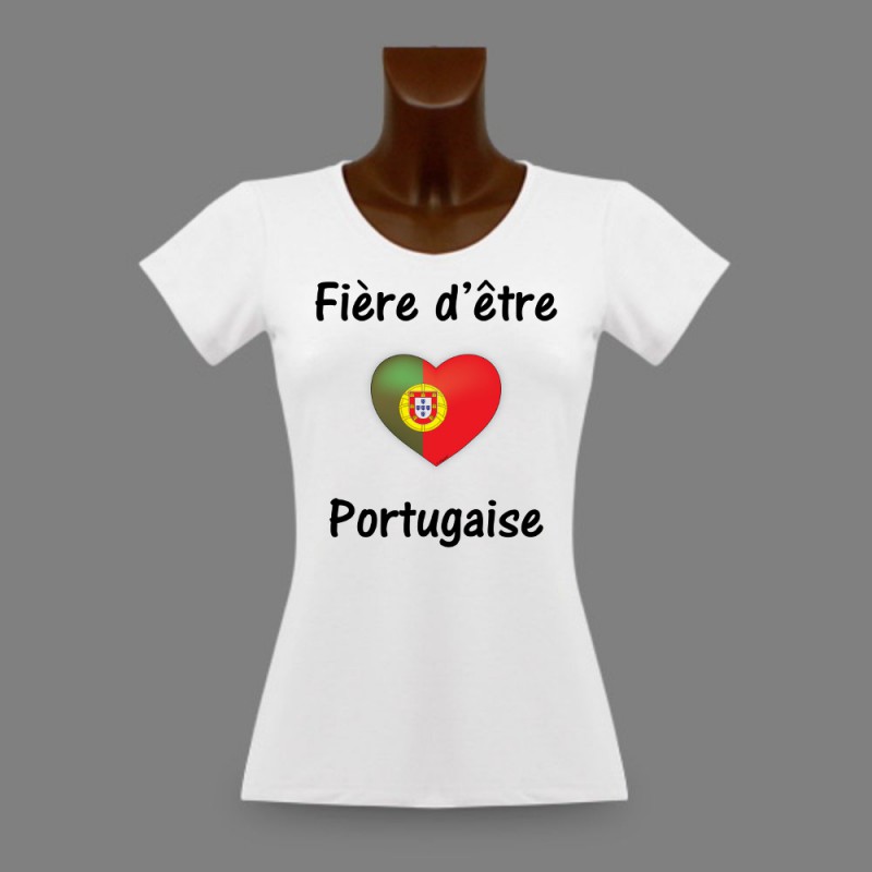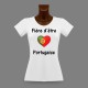 T-shirt à la coupe très féminine, illustré des frontières au couleurs du Portugal et du slogan "Fière d'être Portugaise "