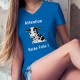 T-shirt à la coupe très féminine illustré d'une vache hallucinée, de sa cloche et de la citation ✿ Attention Vache Folle ! ✿ Pour celles qui ont de l'humour