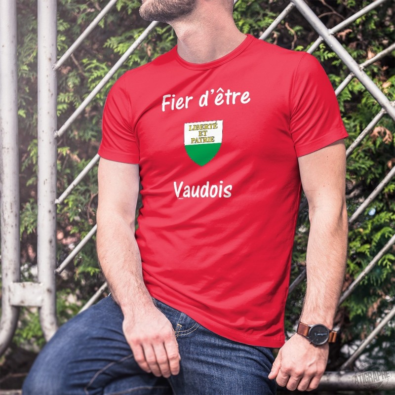 T-shirt coton pour homme avec l'écusson du canton de Vaud et la phrase ★ Fier d'être Vaudois ★