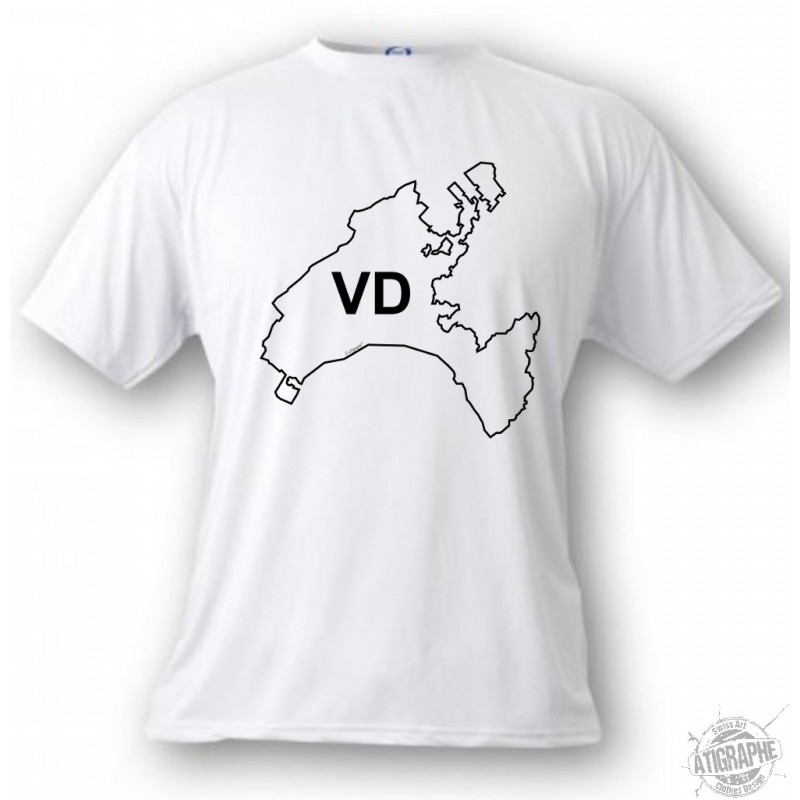 T-shirt illustré des frontières cantonales vaudoises entourant le sigle "VD"