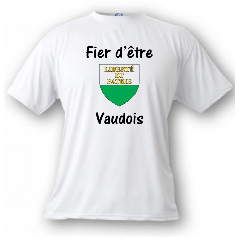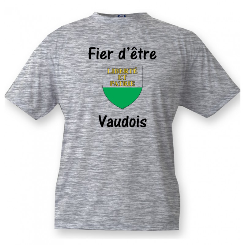 T-shirt homme illustré de l'écusson Vaudois et du slogan "Fier d'être Vaudois"