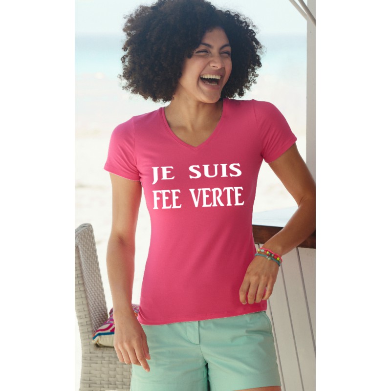 T-shirt mode dame coton illustré de la citation humoristique, " Je suis FEE VERTE" un clin d'oeil au surnom donné à l'Absinthe qui est d'origine neuchâteloise