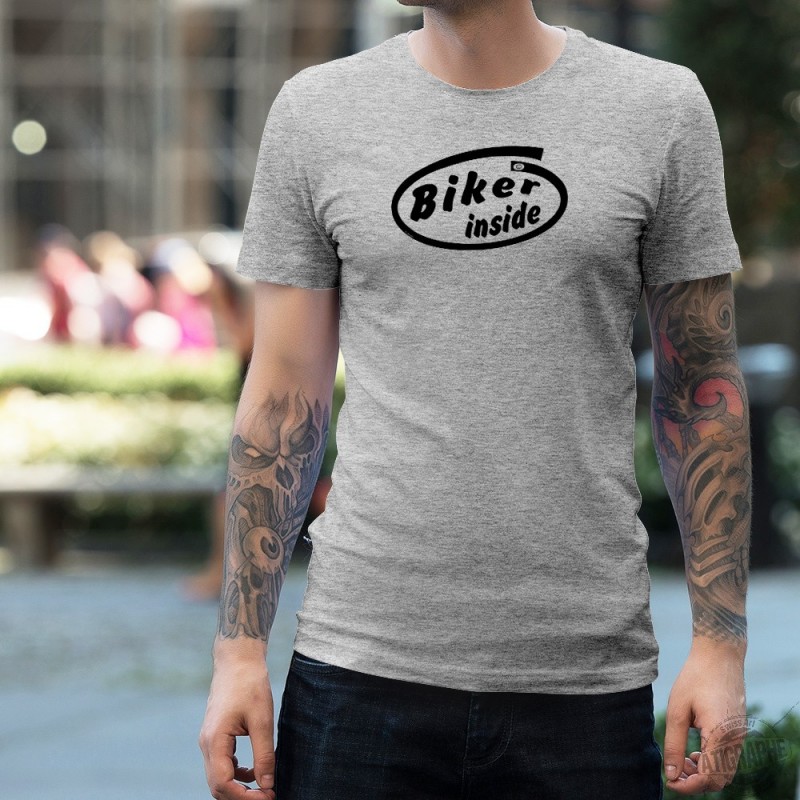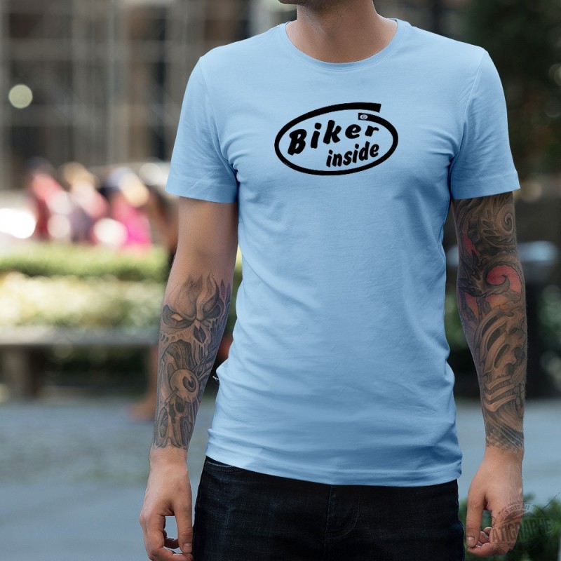 T-shirt humoristique illustré de la citation "Biker Inside" (motard à l'intérieur du T-shirt) une variation du slogan d'Intel