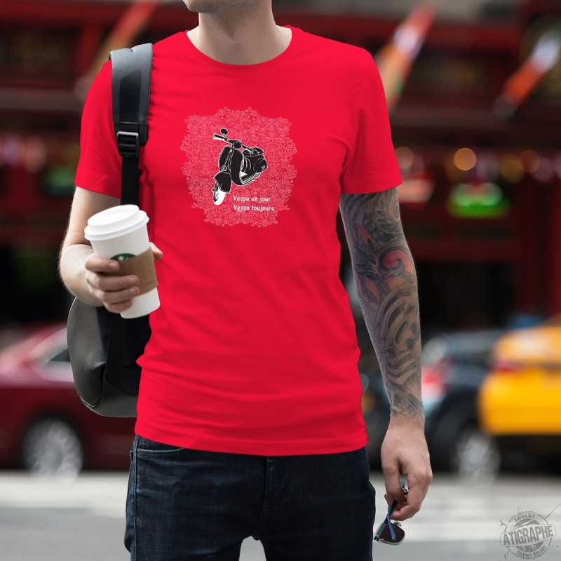 T-shirt 100% coton illustré de la célèbre Vespa et de la citation humoristique "Vespa un jour, Vespa toujours"