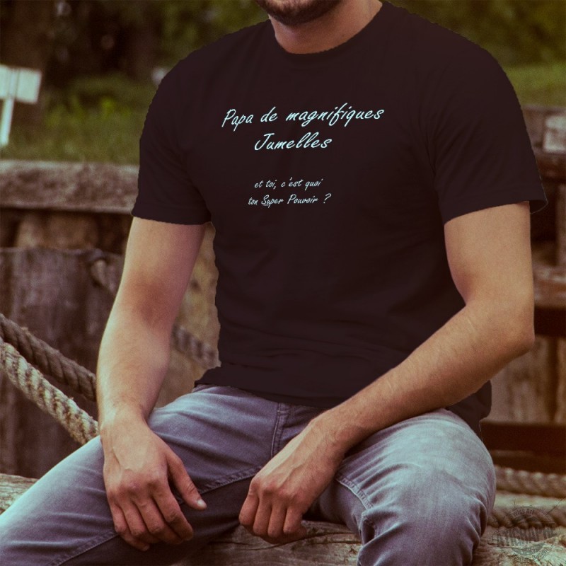 T-shirt 100% coton illustré de la citation "Papa de magnifiques Jumelles et toi, c'est quoi ton Super Pouvoir", pour tous les papas de jumelles