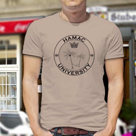 Tee-shirt mode homme illustré du blason de la célèbre HAMAC University, réputée pour ses cours sur le sommeil et la farniente