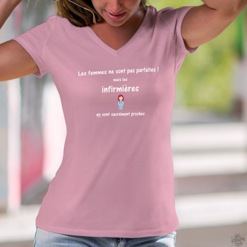 T-shirt à la coupe très féminine avec ✿ Les femmes ne sont pas parfaites ! mais les Infirmières en sont sacrément proches ✿ et d'une infirmière souriante ✿