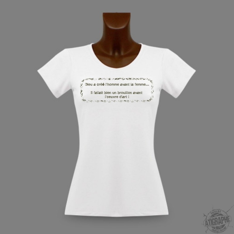 Dieu créa l'homme avant la femme. Pourquoi ? Ce t-shirt slim moulant répond à cette question.