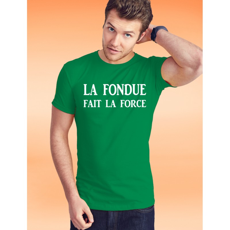 T-shirt 100% coton illustré de la citation humoristique, " La Fondue fait la Force "