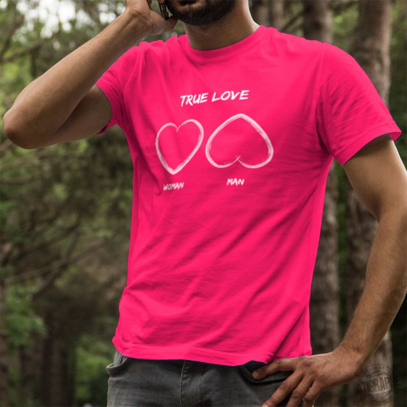 T-shirt humoristique 100% coton illustré d'une certaine vision de ❤ l'amour vrai ❤ selon que l'on soit une femme ou un homme