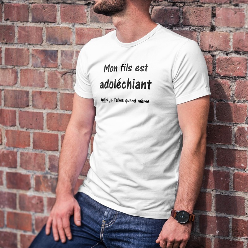 T-shirt humoristique mode pour homme illustré de la phrase ★ Mon fils est adoléchiant, mais je l'aime quand même ★