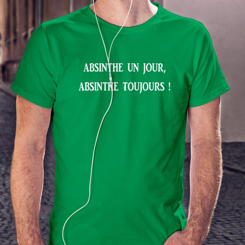 T-shirt 100% coton pour homme avec le texte ★Absinthe un jour, Absinthe toujours ★ en l'honneur de la Fée Verte appelée aussi "La Bleue"