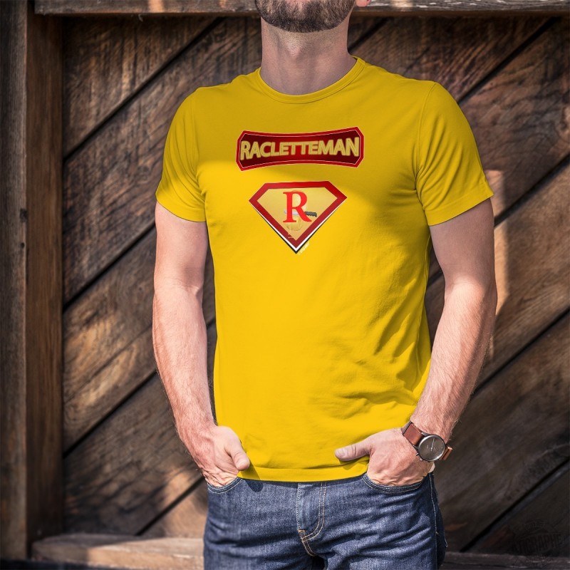 T-shirt 100% coton humoristique homme avec les signes distinctifs des ✻ Super Héros ✻ des BD comics. Vous êtes celui qui à de super-pouvoirs en mangeant la raclette