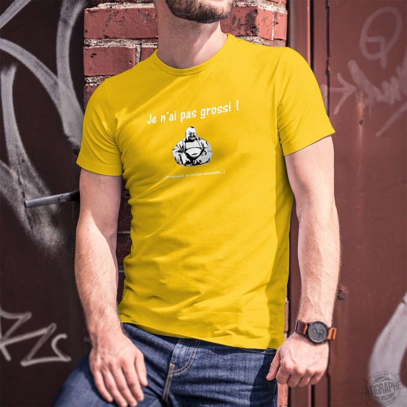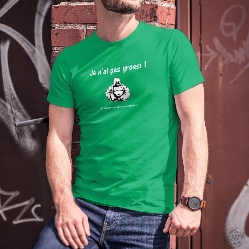 T-shirt 100% coton pour humoristique homme avec une représentation de ★ Bouddha ★ et de la citation ★ Je n'ai pas grossi. j'ai augmenté ma surface caressable ★