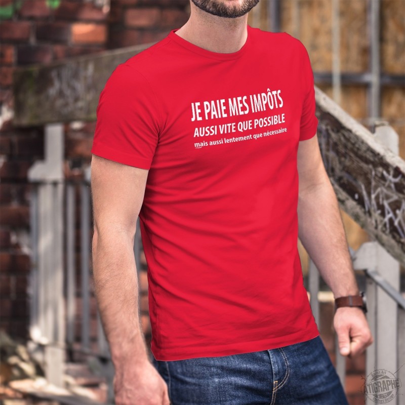 T-shirt coton inspiré de la phrase culte de notre ministre Alain Berset ✚ Je paie mes IMPÔTS aussi vite que possible mais aussi lentement que nécessaire ✚