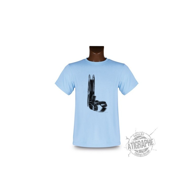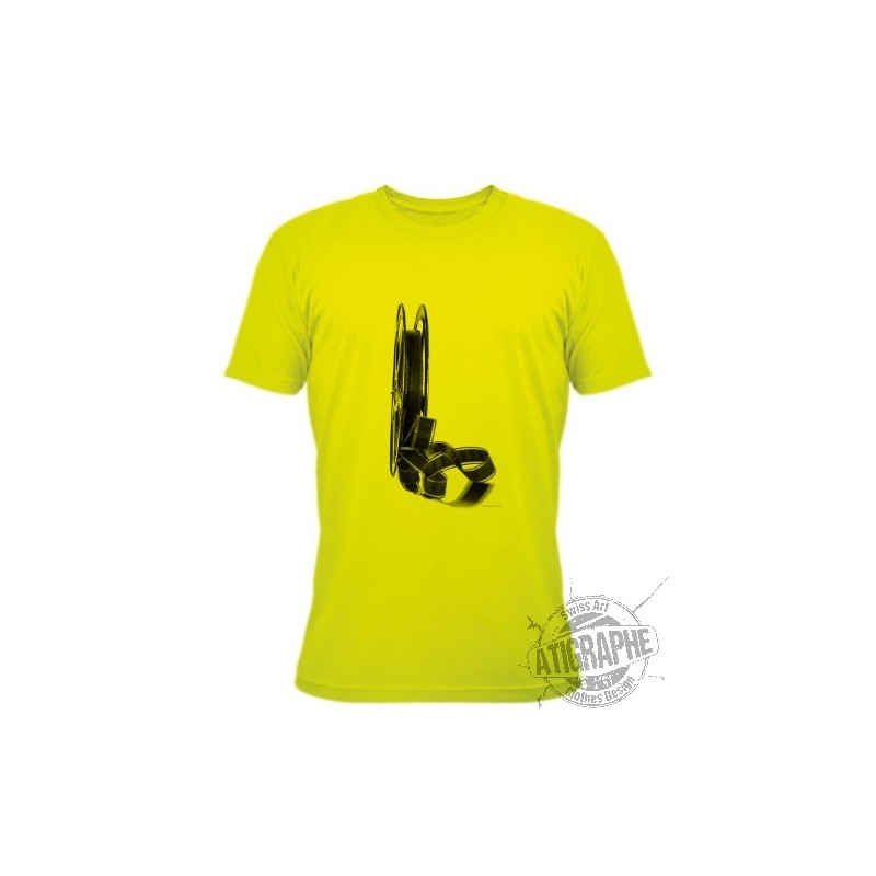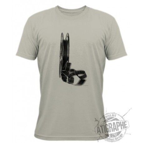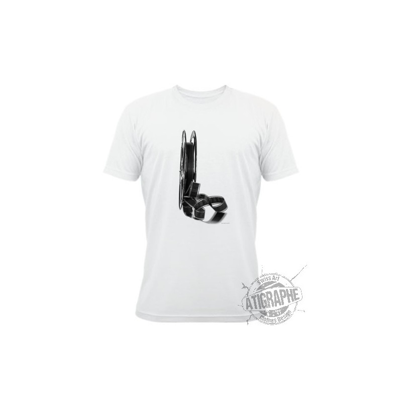 Ce tee-shirt est illustré par une bobine de pellicule utilisée dans le cinéma.