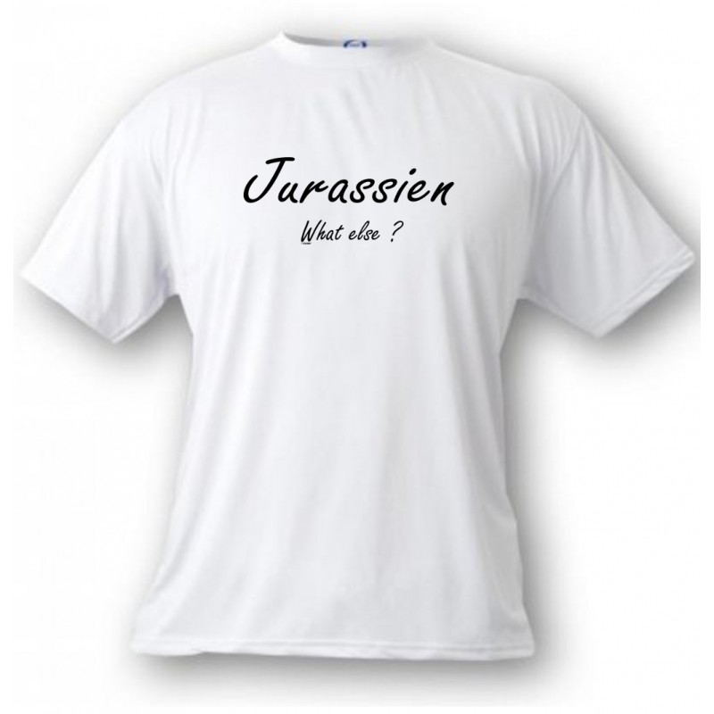 T-shirt pour enfant, illustré de la citation "Jurassien, What else ?", une digression du slogan de George Clooney. Pour enfants de 2 à 14 ans
