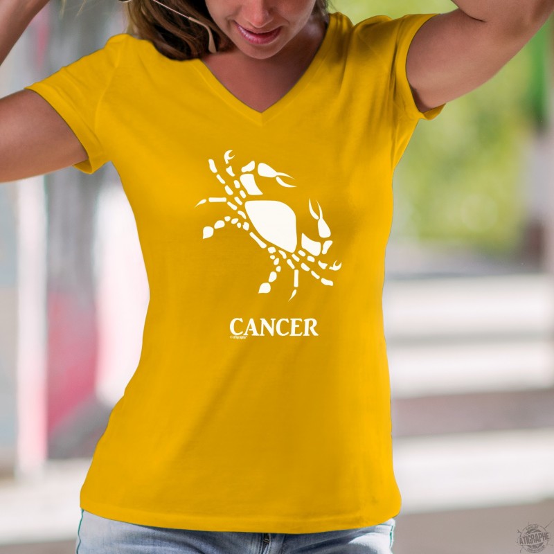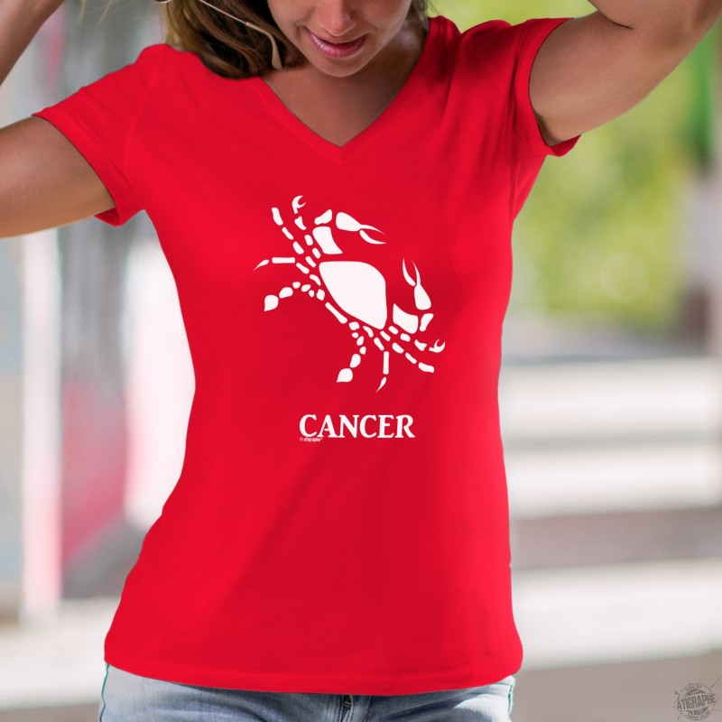 T-shirt coton dame illustré du signe astrologique du Cancer (symbolisé par un crabe) ♋ et correspond aux personnes nées entre le 22 juin et le 22 juillet