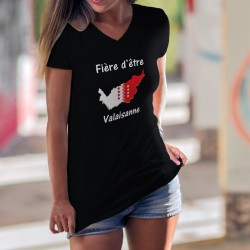 T-shirt moda femminile illustrato con la citazione francese "Fière d'être Valaisanne" e il Stemma di Vallese