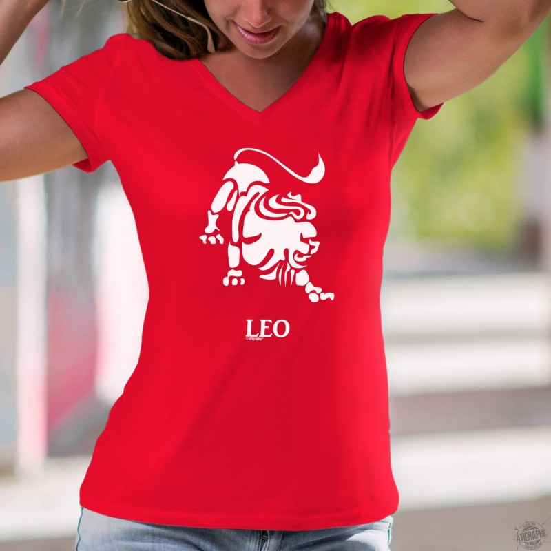 Cotone T-shirt con un leone raffigurante il segno zodiacale del Leone per le persone nate tra il 23 luglio e il 23 agosto in astrologia tropicale