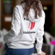 Felpa con cappuccio bianco per le signore, illustrata con la bandiera del Vallese dello slogan in francese "Fière d'être Valaisanne"