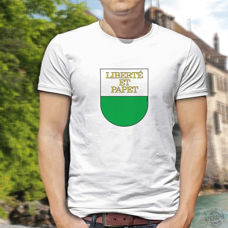 T-shirt da uomo illustrata con Signora Helvetia e "Aussi vite que...