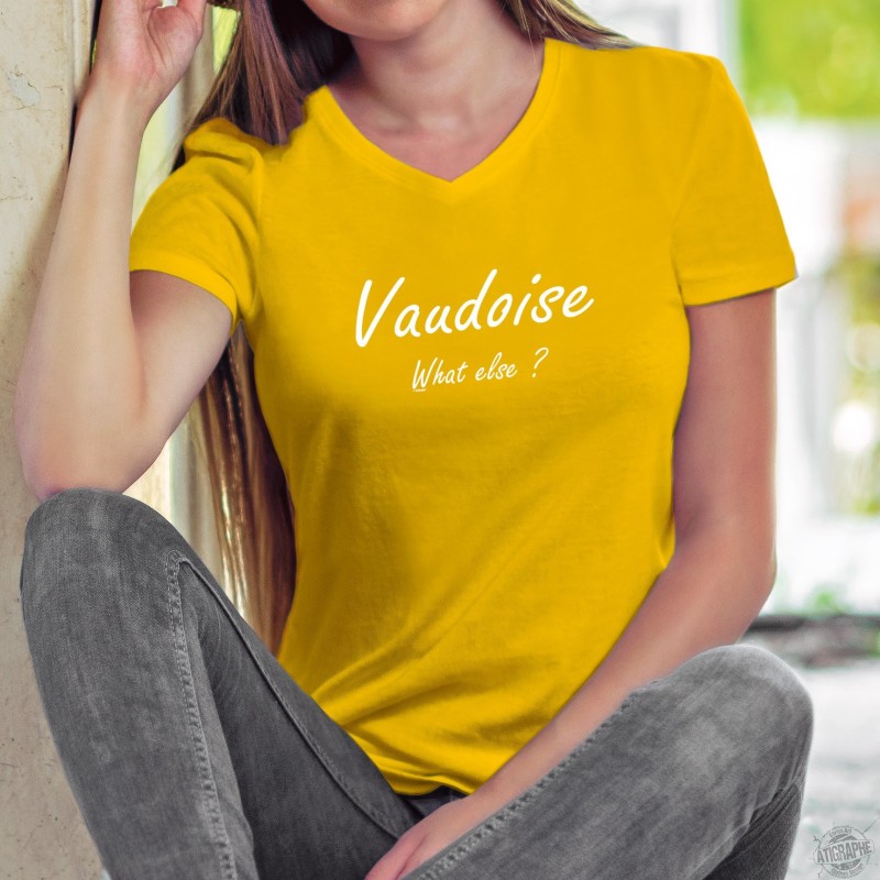 Donna T-Shirt illustrata con la citazione "Vaudoise, What else ?", Una digressione dello slogan di George Clooney per una marca di caffè famoso