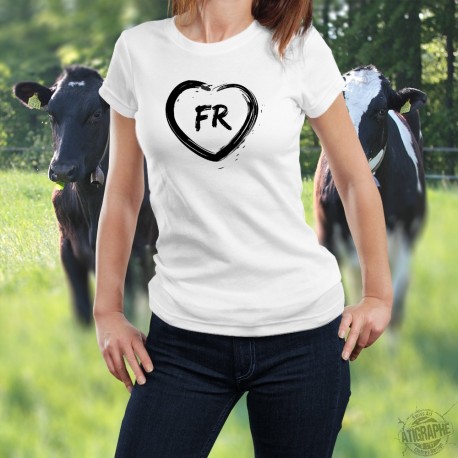 Donna T-shirt illustrato da pennello di un cuore e lettere FR