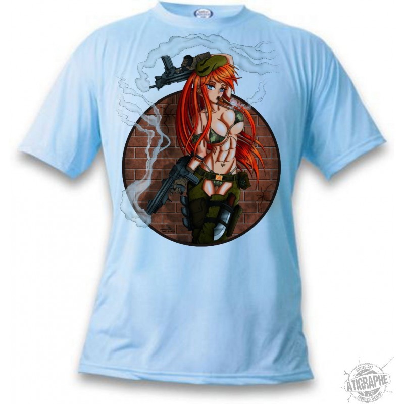 Donna moda T-Shirt, 100% cotone, illustrata con ✚ Aussi vite que...