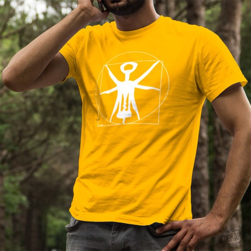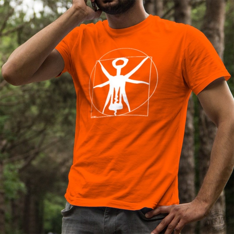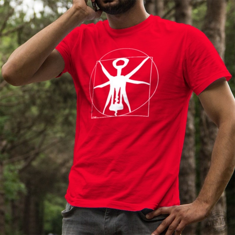 Moda cotone T-Shirt illustrata con la famosa rappresentazione delle perfette proporzioni ideali del cavatappi perfettamente inscritto in un cerchio e un quadrato (simbolico del cerchio e del quadrato)