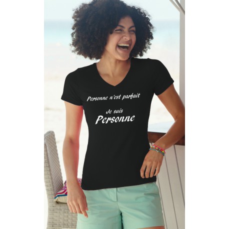 Donna moda cotone T-Shirt illustrato con divertente citazione francese "Personne n'est parfait, Je suis Personne"