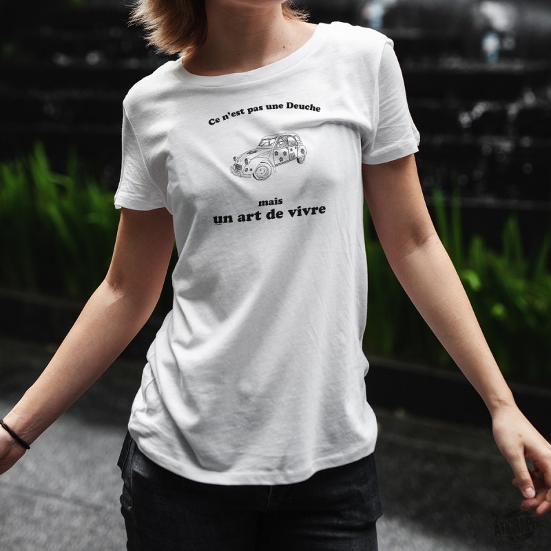 T-shirt da donna illustrata con il preventivo "Ce n'est pas une Deuche"