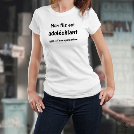 Donna moda T-Shirt, 100% cotone, illustrata con ✚ Aussi vite que...