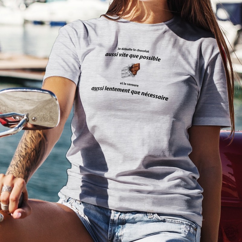 Donna moda T-Shirt, 100% cotone, illustrata con ✚ Aussi vite que...