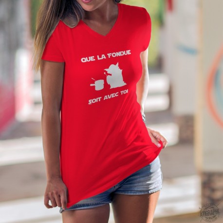 T-shirt in cotone femminile illustrata con "Que la Fondue soit avec Toi ★ Yoda ★