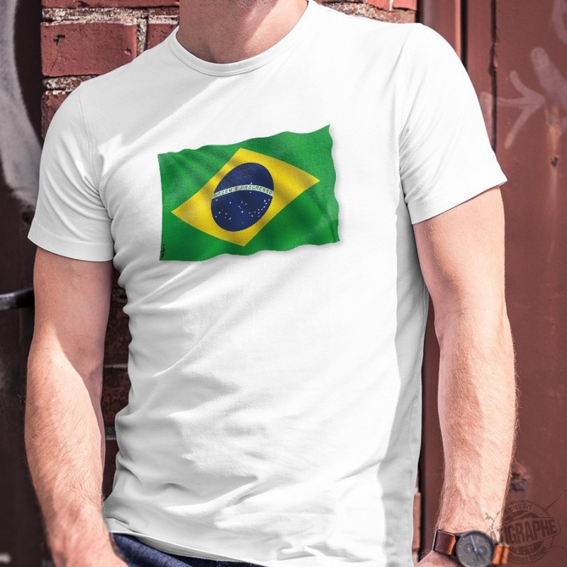 T-shirt da uomo con bandiera fluttuante nei colori del Brasile