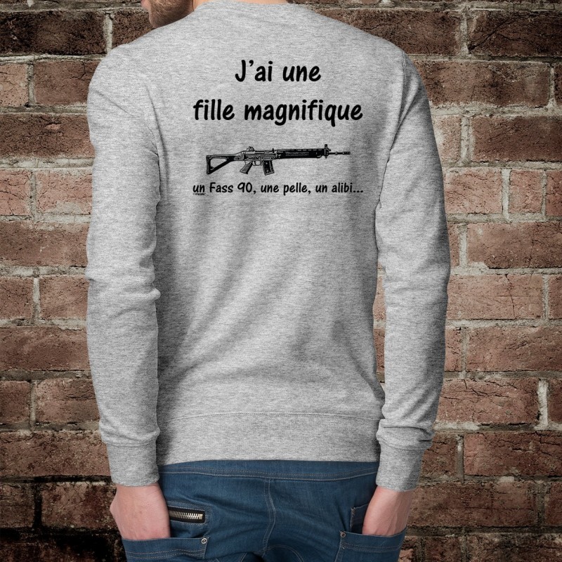 Felpa umoristica, illustrata con la citazione "J'ai une fille magnifique"