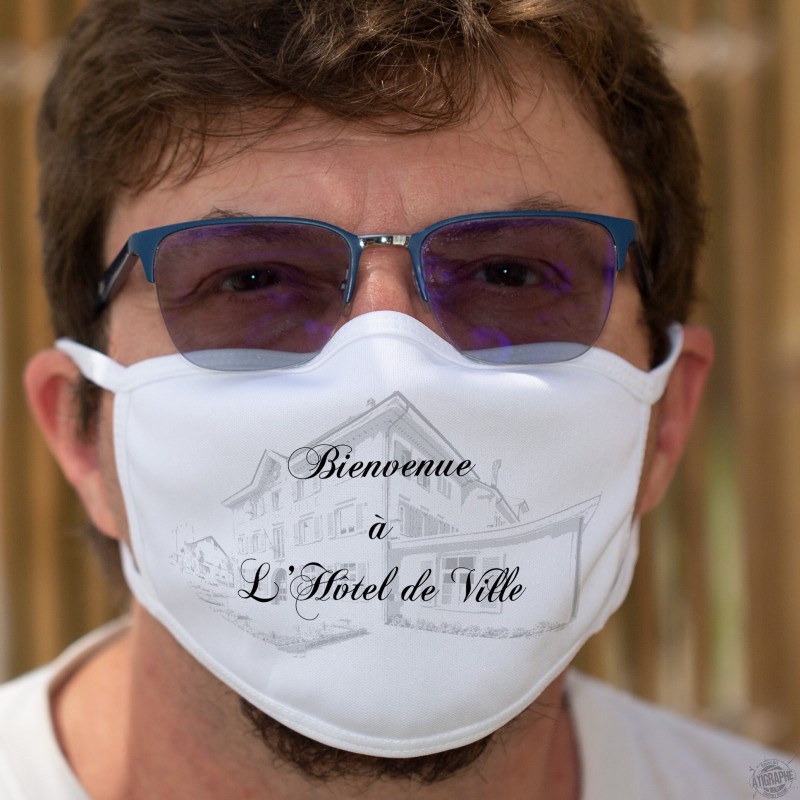 Maschera protettiva a doppio strato in tessuto lavabile più volte a 60 ° C, con il logo della tua azienda o attività.