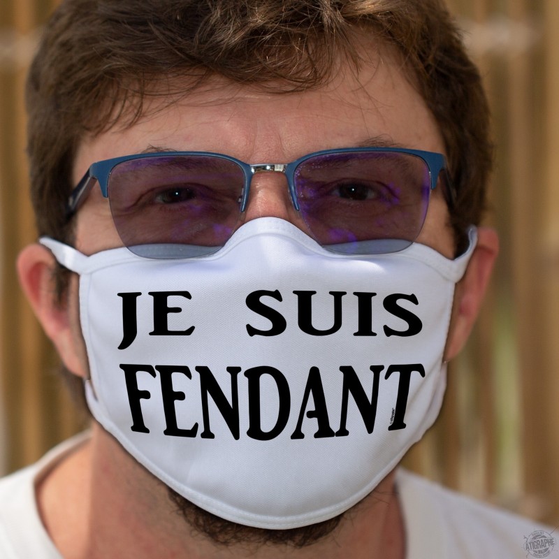 Maschera in tessuto doppio strato lavabile a 60 ° C, con Je suis FENDANT ★ Chasselas valaisan ★